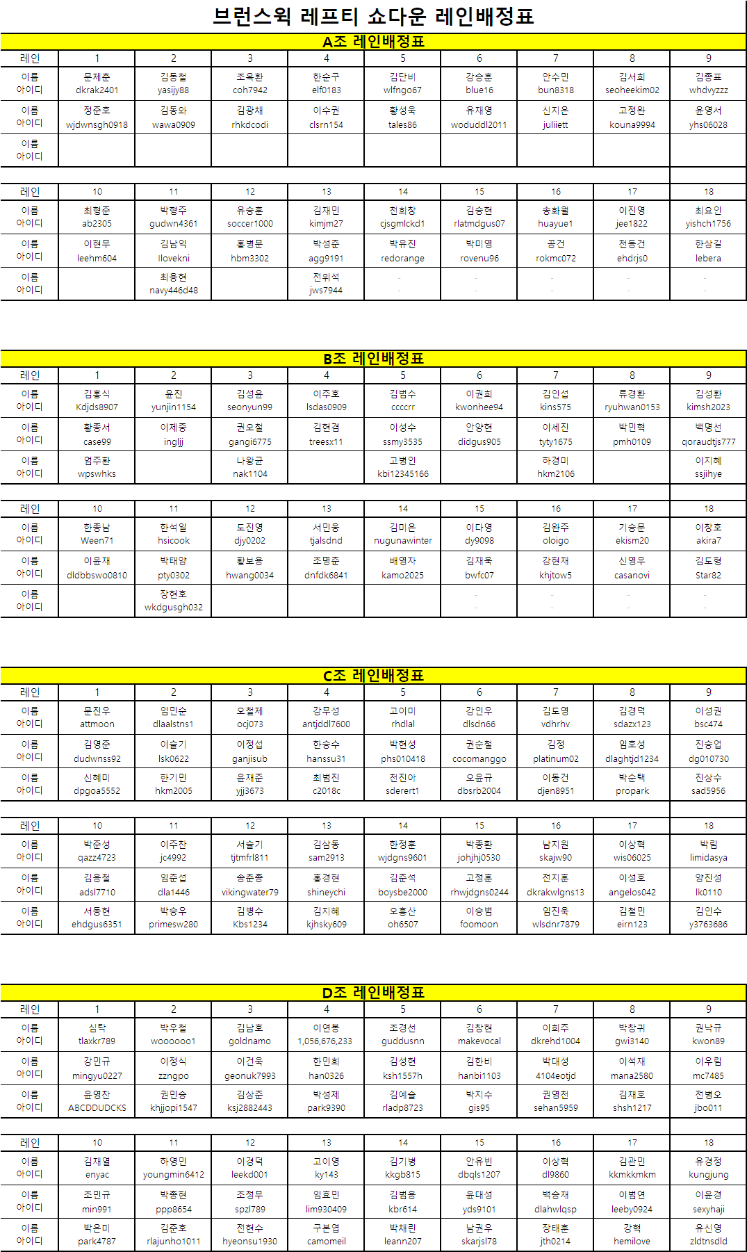 대회 레인패턴